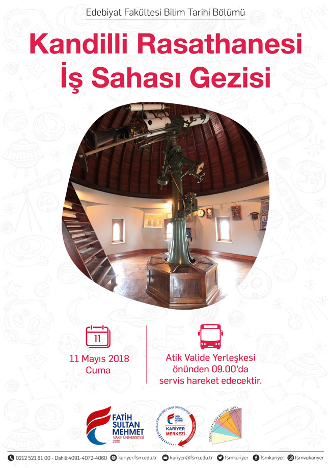 Edebiyat Fakültesi tarafından 11 Mayıs'ta, Kandilli Rasathanesi'ne İş Sahası Gezisi düzenlenecektir.