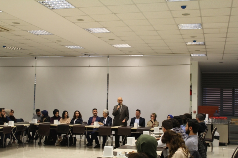 Mühendislik Fakültesi Dekanı Prof Dr. Fevzi Yılmaz konuşması ile öğrenci ve mezunlarımıza üniversitemizdeki Biyomedikal Mühendisliği bölümünün öneminden, güçlü akademik kadrosundan ve laboratuvarlarından bahsetti. Toplantı için bölüm hocalarına teşekkürlerini sunan Yılmaz, mezun ve öğrencilerimize “ siz bizim için değerlisiniz, hepinize başarılar diliyorum.” dedi.