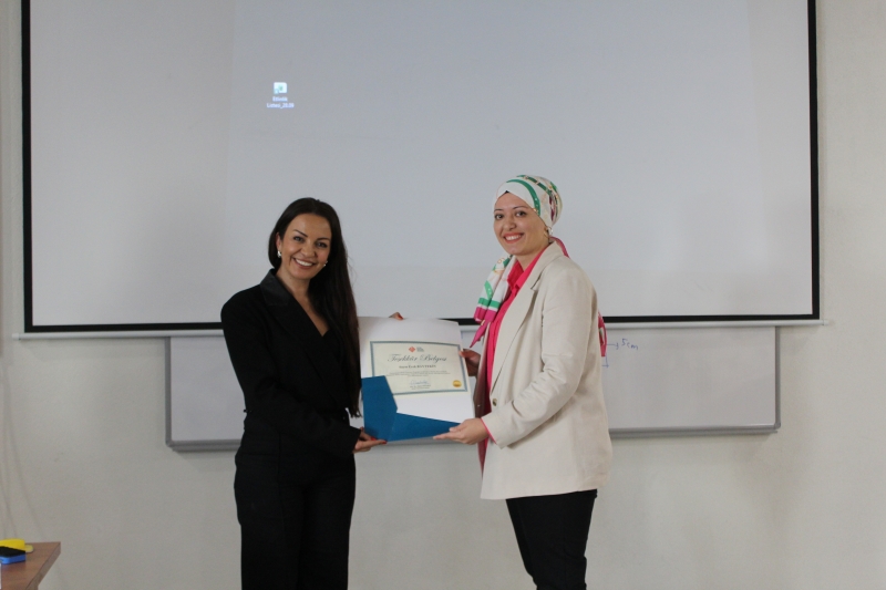 Öğrencilerimizin seminer sonrasında sorularını cevaplandıran Baytekin'e, Moda Tasarımı Programı Başkanı Öğr. Gör. Melike AKCA ve Kariyer Geliştirme ve Mezun İlşikilerinden Rahime Nur GÜNGÖR'ün hediye takdimleri ile programımız son bulmuştur.