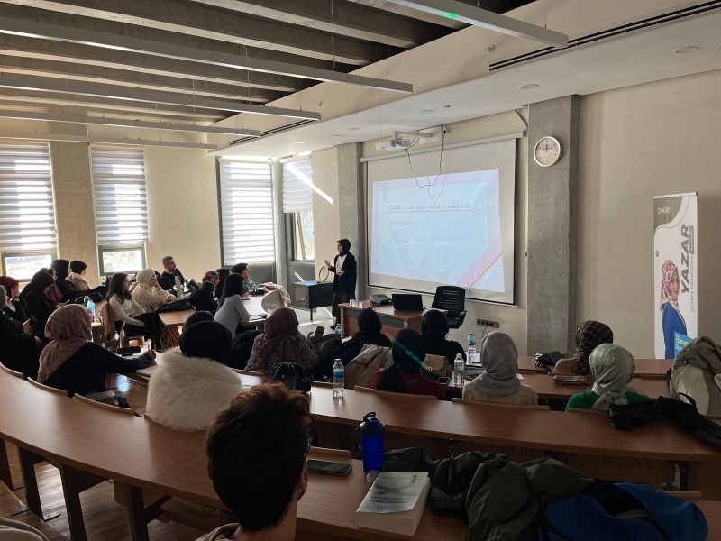 Çocuk Gelişimi Programı öğrencilerimiz ile bir araya gelen Namazcı, iyi bir öğretmen nasıl olunur, 0-6 yaş grubu çocuklarla ve ebeveynleriyle nasıl iletişime geçmeliyiz, okula alışma dönemi için çocuklarla nasıl etkileşime geçilir, bu dönemlerde ebeveynler nasıl davranması gerekir? Sorularını sunumunda vermiş olduğu öneklerle cevaplandırdı.