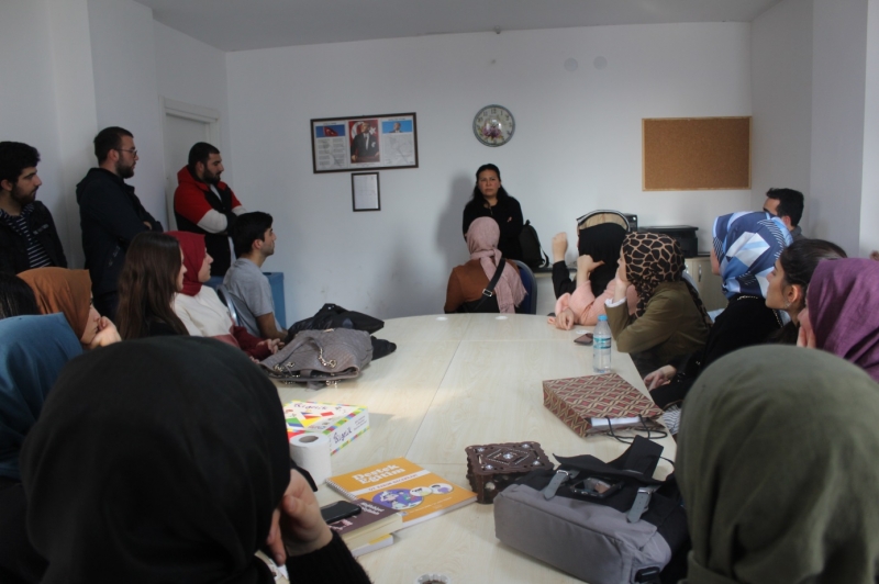 Kariyer Merkezi Eğitim Koordinatörü Seda TÜRKYILMAZ eşliğinde düzenlenen gezimizde ilk olarak kurum müdürü Ayşe KILIÇOĞLU öğrencilerimize kurum işleyişi hakkında bilgiler verdi. Öğrencilerin profilinden ve geliş süreçlerinden bahseden Kılıçoğlu, bir PDR bölümü mezunun çalışma ortamını örnekler vererek anlattı. Burada eğitim alan çocukların hem bireysel hem grup çalışmalarında bulunduklarını ve iyileşme olması durumunda rapor alarak eğitime devam etmek istemeyen kişilerin olduğundan bahsetti. Öğrencilerimize sundukları ikramlar eşliğinde soru cevap şeklinde devam eden konuşma sonrasında öğrencilerimize kurumun sınıfları, öğrencilerin bulundukları ortamlar gezdirildi. Gezimiz kurum müdürüne hediye takdimi ile sona erdi.