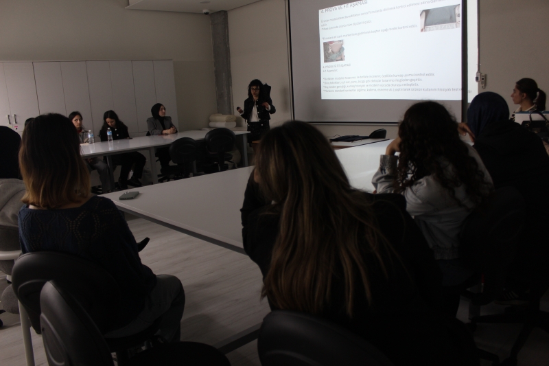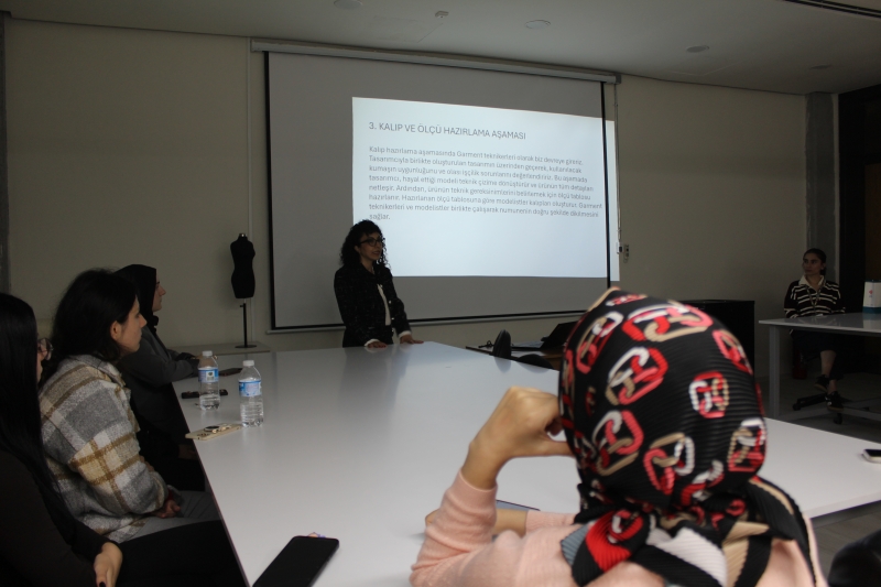 Fatih Sultan Mehmet Vakıf Üniversitesi Kariyer Geliştirme Merkezi ve Mezun İlişkileri Ofisi olarak,Moda Tasarımı Programı öğrencilerimizi sektörün deneyimli isimleriyle buluşturmaya devam ediyoruz. Penti Çorap firmasında Kıdemli Garment Teknikeri olarak görev yapan Gülhan Acar, bir moda tasarımcısının hayalini gerçeğe dönüştüren kişi olarak, üretim sürecindeki teknik detayları, koleksiyon hazırlık aşamalarını ve sektörde fark yaratmanın püf noktalarını öğrencilerimizle paylaştı. Öğrencilerimizin kariyer yolculuklarına katkı sağlayan bu tür buluşmalar; profesyonel gelişimi destekleyen, ilham veren ve yeni bakış açıları kazandıran önemli adımlardır. Katılım gösteren tüm öğrencilerimize ve hocalarımıza teşekkür eder; iş birliklerimizin artarak devam etmesini dileriz.